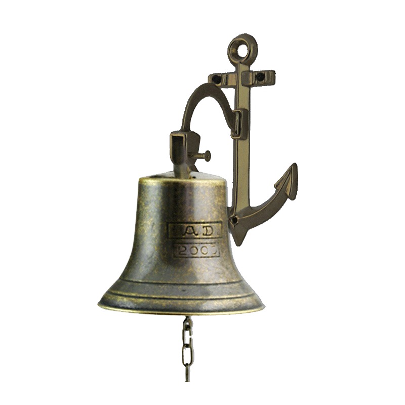 Рында a.d. 2000 на кронштейне якорь, ,диаметр 14 см, антик. Производство:Италия Состав:латунь Размер:20x14x18 см