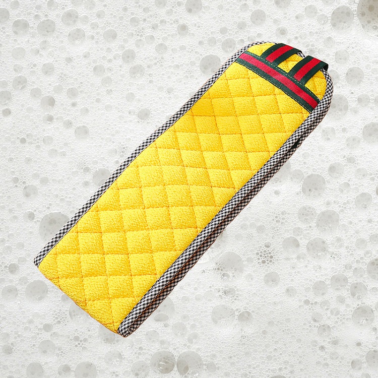 Мочалка для душа, 85 см, желтая, 10х17х3 см. Страна бренда США Страна производства Китай Цвет желтый Размер 85х9х0,6х Материал хлопок, махровая ткань Мочалка для душа обладает особой структурой волокна, которая обеспечивает эффект массажа, стимулирует циркуляцию крови по всему телу и помогает отшелушивать омертвевшие клетки, сохраняя здоровье и упругость кожи. Мочалка позволяет получать обильную пену, используя небольшое количество геля для душа. Она станет приятным дополнением по уходу за телом в вашей ванной комнате. Жесткость: средне-жесткая. Материал: хлопок, махровая ткань. Применение: нанесите необходимое количество геля или мыла на мочалку, взбейте пену. Легкими движениями массируйте кожу. Бренд  развернуть описание ▼