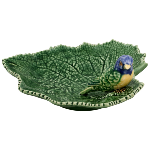 Блюдо Bordallo Pinheiro листья 19см (с синей птичкой)