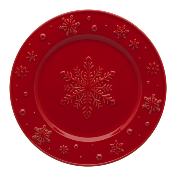 Тарелка закусочная Bordallo Pinheiro снежинки 22см, красная