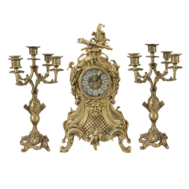 Часы антикварные каминные с канделябрами карранка тападо