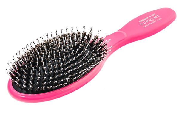 Щетка Combo Supreme с керамической поверхностью, обогащённой отрицательно заряженными ионами, с натуральной щетиной дикого кабана и штифтами из термостойкого нейлона. Резиновая подушечка легко прогибается для лучшего результата при расчёсывании и укладке волос.