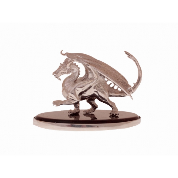 Сувенир "дракон" из янтаря. Состав: натуральный янтарь, серебро 875 пробы или белая ювелирная бронза. Вес серебра в изделии - 83 гр. Высота: 5 см, основание: 7 х 5 см. Поставляется в подарочном футляре. В случае отсутствия товара на складе, срок изготовления и поставки от 3-х недель.