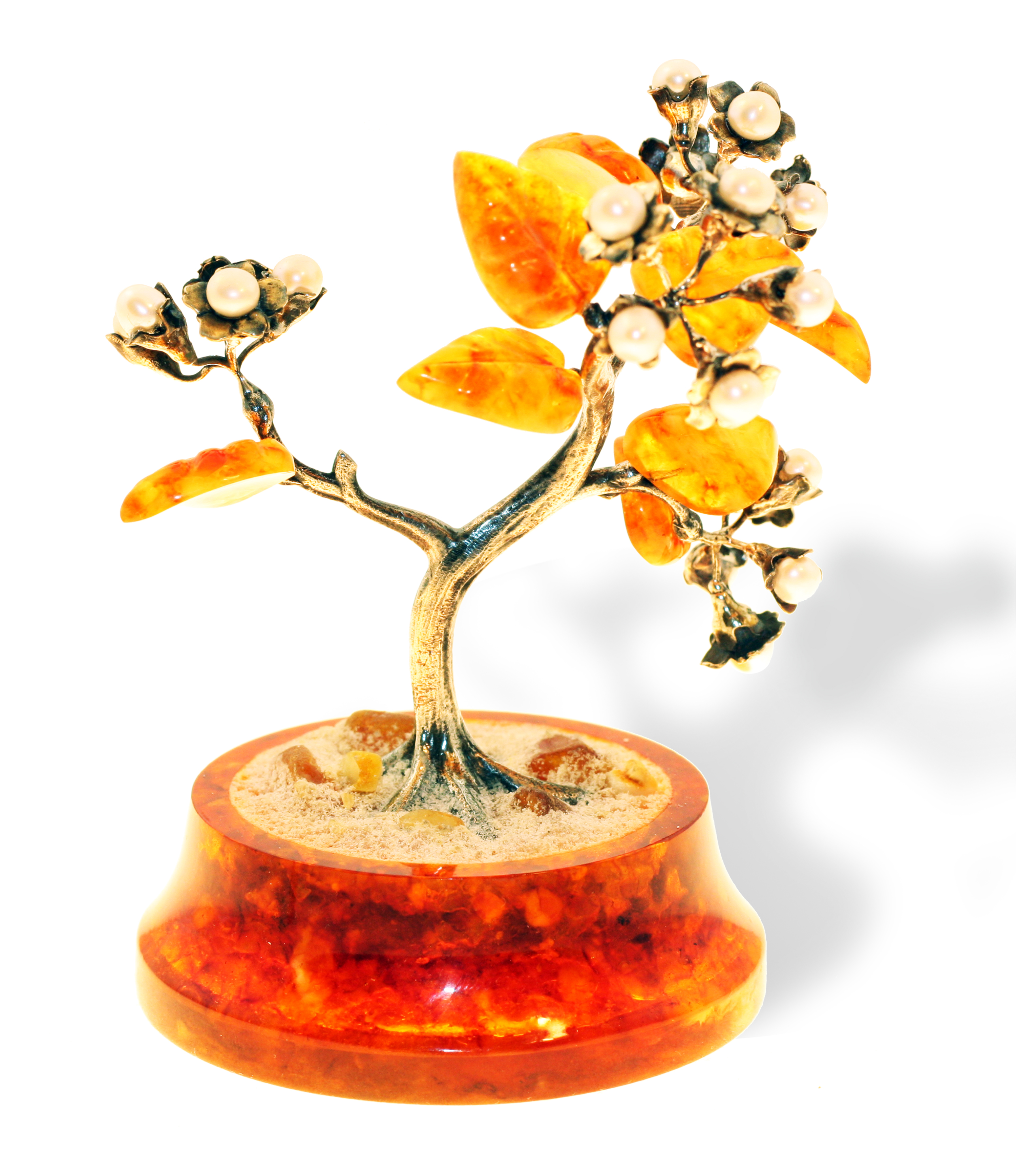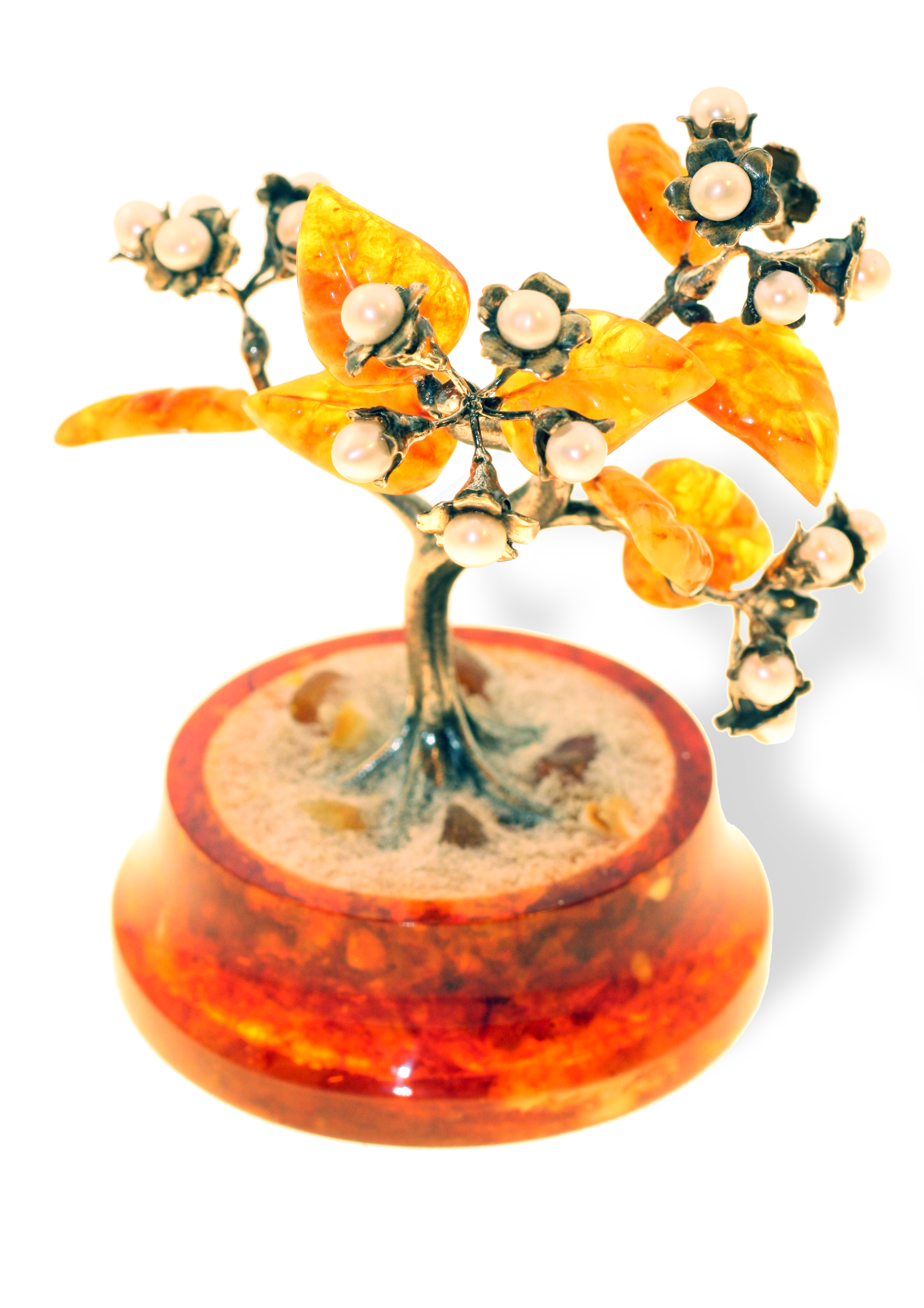 Сувенир "цветущая сакура" из янтаря. Состав: янтарь, серебро 875 пробы/белая ювелирная бронза, речной жемчуг. Вес серебра в изделии - 40,00 гр. Высота - 9,2 см., диаметр подставки - 5,4 см. Поставляется в подарочном футляре. В случае отсутствия товара на складе, срок доставки - от 3 недель.