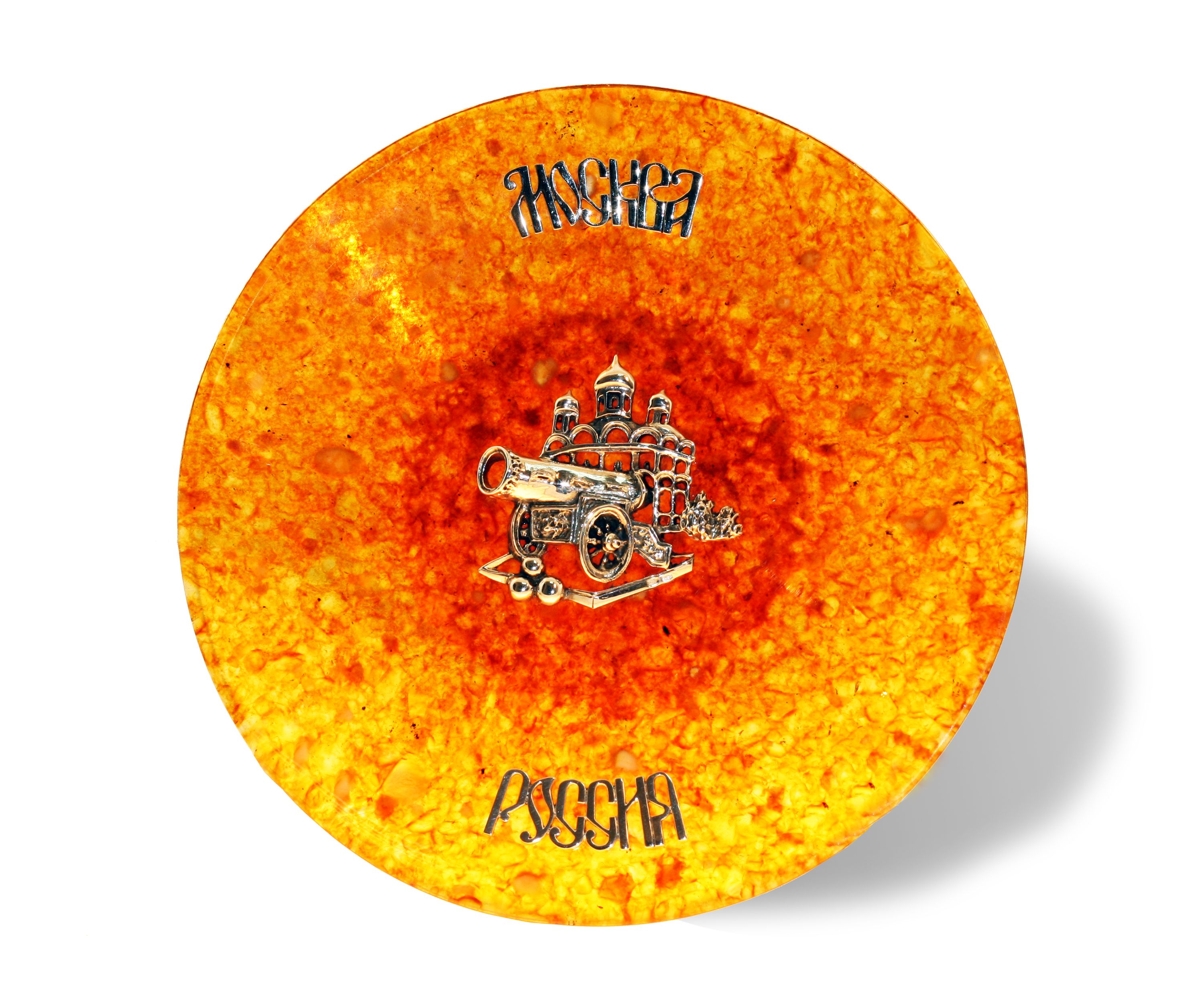 Панно "царь-пушка" из янтаря. Состав: янтарь, серебро 875 пробы/белая ювелирная бронза. Вес серебра в изделии - 23 гр. Диаметр: - 145 мм. В комплект входит: панно, пластиковая подставка, подарочный футляр. Срок изготовления - от 3-х недель.