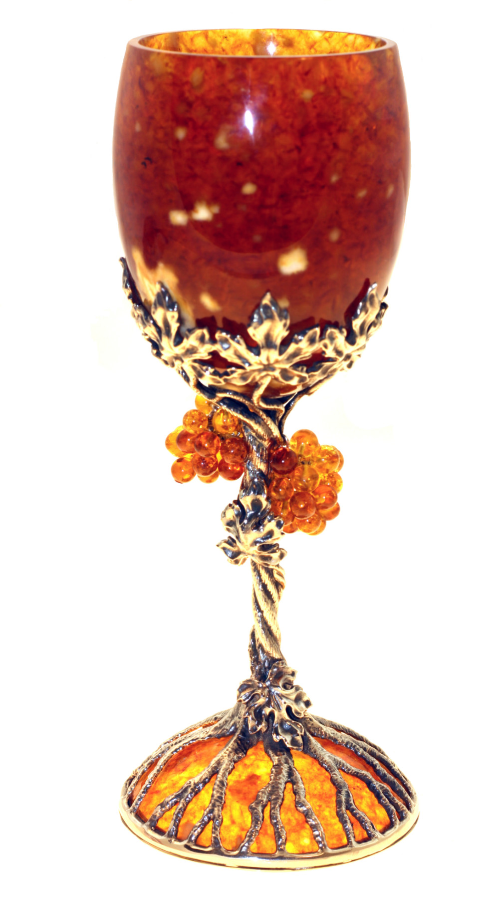 Бокалы из янтаря для вина "виноград" набор на 6 персон (ювелирная бронза)