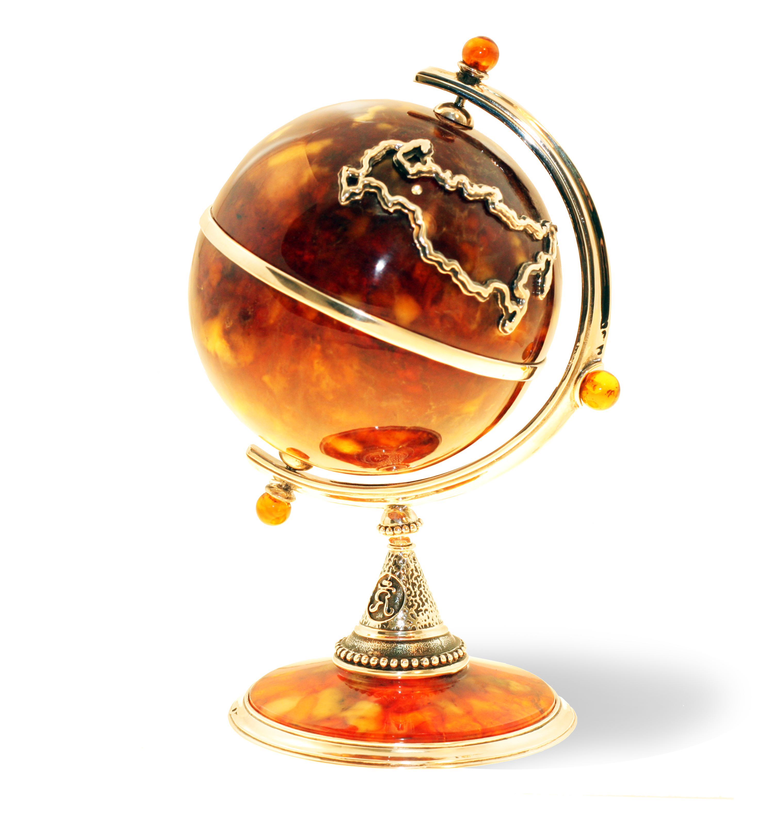 Сувенир "глобус" из янтаря. Высота: 155 мм Состав: натуральный янтарь, белая ювелирная бронза или серебро 875 пробы. Вес серебра в изделии - 140 гр. Поставляется в подарочном футляре. В случае отсутствия товара на складе срок изготовления от трех недель.