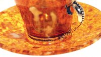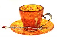Кофейный набор из янтаря. Состав: натуральный янтарь,белая ювелирная бронза или серебро 875 пробы. Чашечка - высота: 5,0 см, диаметр: 6,0 см; блюдце - диаметр 11,0 см. В набор входит чашка, блюдце, ложечка. Набор в элегантном футляре. Может поставляться наборами на 1, на 2, на 3 и на 6 персон. Рекомендуемая температура для горячего кофе не более 80 градусов. В случае отсутствия товара на складе срок изготовления от трех недель.