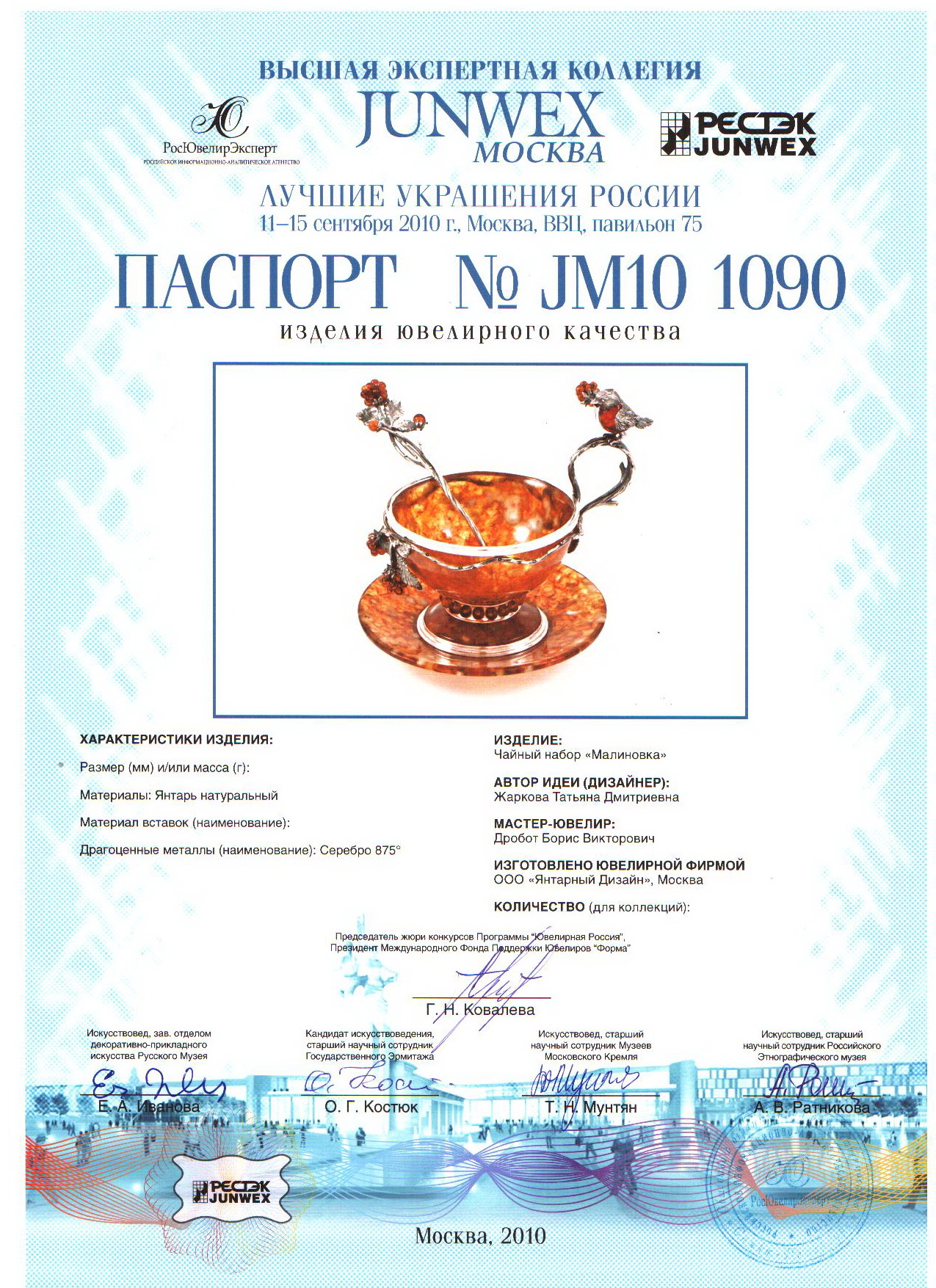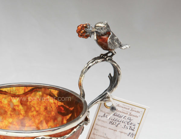 Чайный набор из янтаря "малиновка" на 2 персоны (ювелирная бронза)