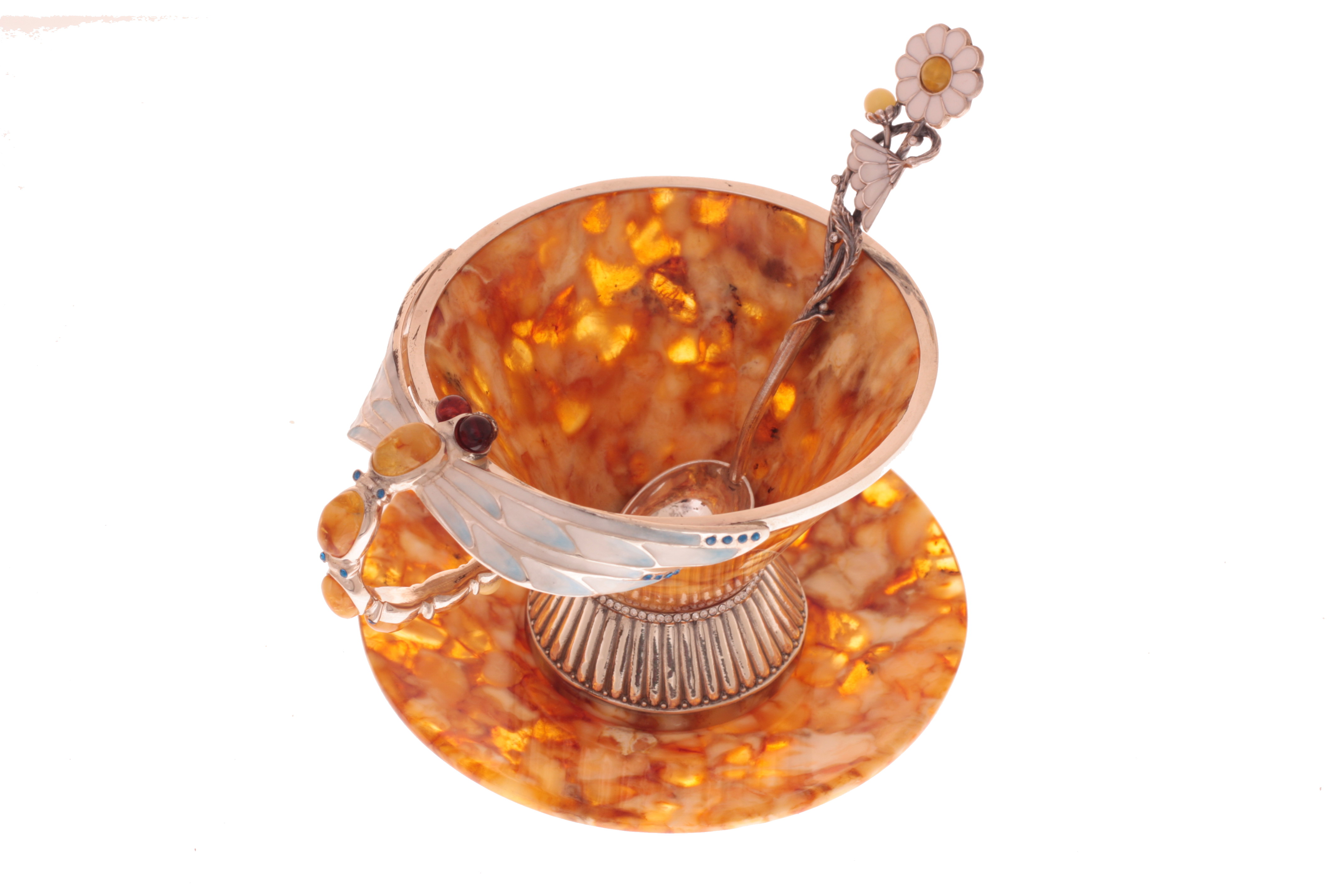 Чайная чашка "летняя стрекоза" из янтаря с ложечкой Чайная чашка "летняя стрекоза" из янтаря с ложечкой Чайная чашка "летняя стрекоза" из янтаря с ложечкой