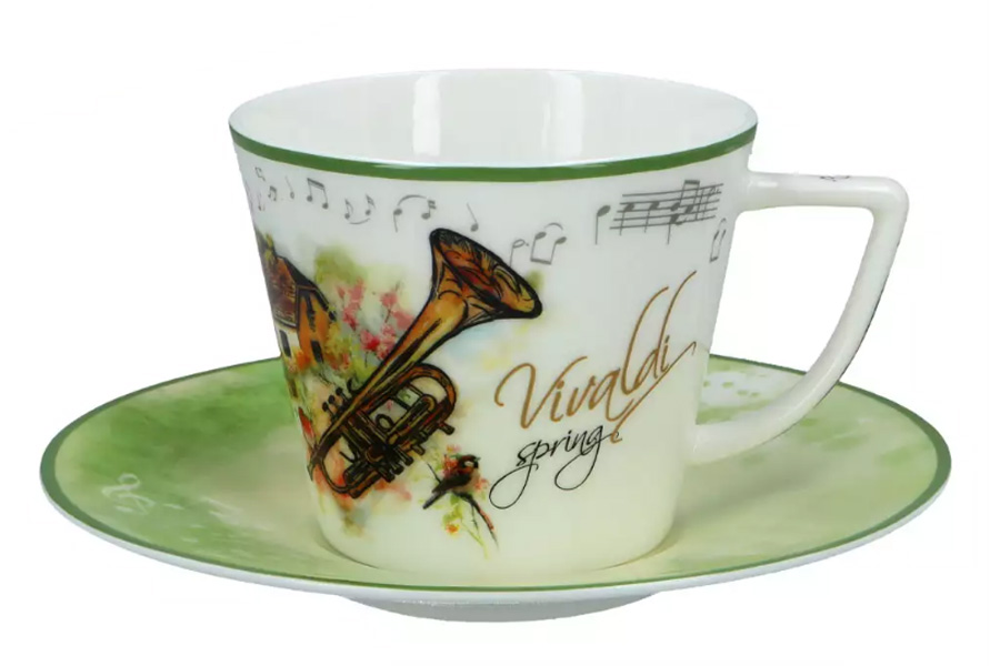 Пара чайная, 1 перс, 2 пр, 230 мл, фарфор F, белая/зеленая, весна, A. Vivaldi