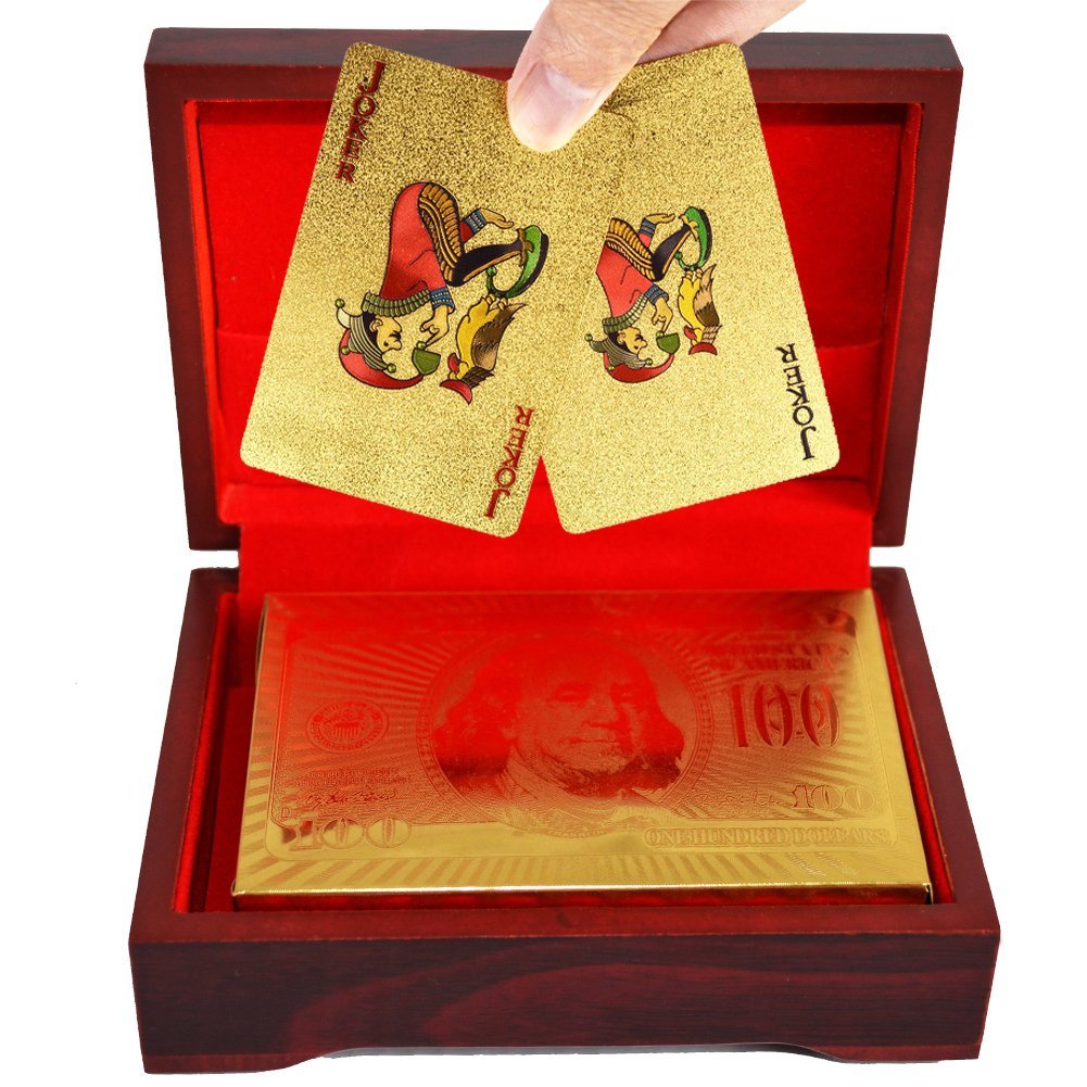 Card-01 золотые игральные пластиковые карты 54 шт в шкатулке из красного д Card-01 золотые игральные пластиковые карты 54 шт в шкатулке из красного д