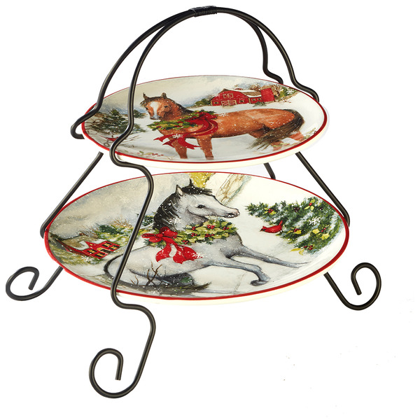 Блюдо двухъярусное Certified Intl рождество на ферме 23см