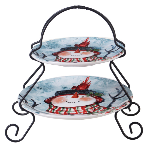 Блюдо двухъярусное Certified Int. снеговик 18см, 23см