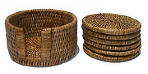 Набор подстаканников из ротанга темно-коричневого цвета в аккуратной плетеной коробочке. Круглые подставки будут прекрасно смотреться на столе, добавляя убранству утонченность и изысканность. Кроме того, в силу плотного плетения и экологически чистого материала, ротанг максимально практичен и удобен в использовании. Наименование: Подставки под кружки и стаканы Артикул: CO-2tv Цвет: темно-коричневый Размер: диаметр: 12 см. высота: 7 см. Состав: ротанг