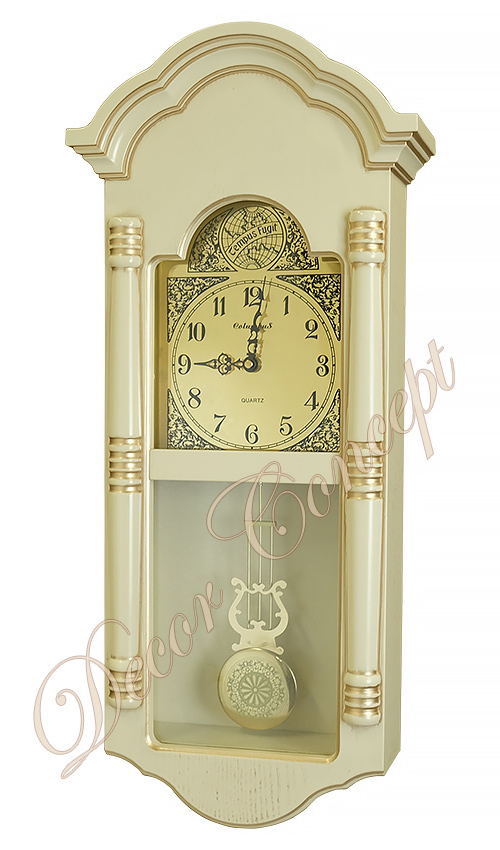 Часы настенные columbus co-1836-pg-iv. Деревянные настенные часы Columbus Co-1836-PG-Iv с маятником и боем Корпус : натуральное дерево с резным фронтоном. Механизм : кварцевый. Мелодия : 4 типа - Westminster и часовой бой (в разных сочетаниях). Программное отключение звука с 22.00 до 5.00 часов Питание : 4 элемента типа АА (R6). Вес в упаковке : 4.4 кг Вес, кг 3.7 Материал корпуса дерево Механизм кварцевый Размер часов 67х29.5х12 см