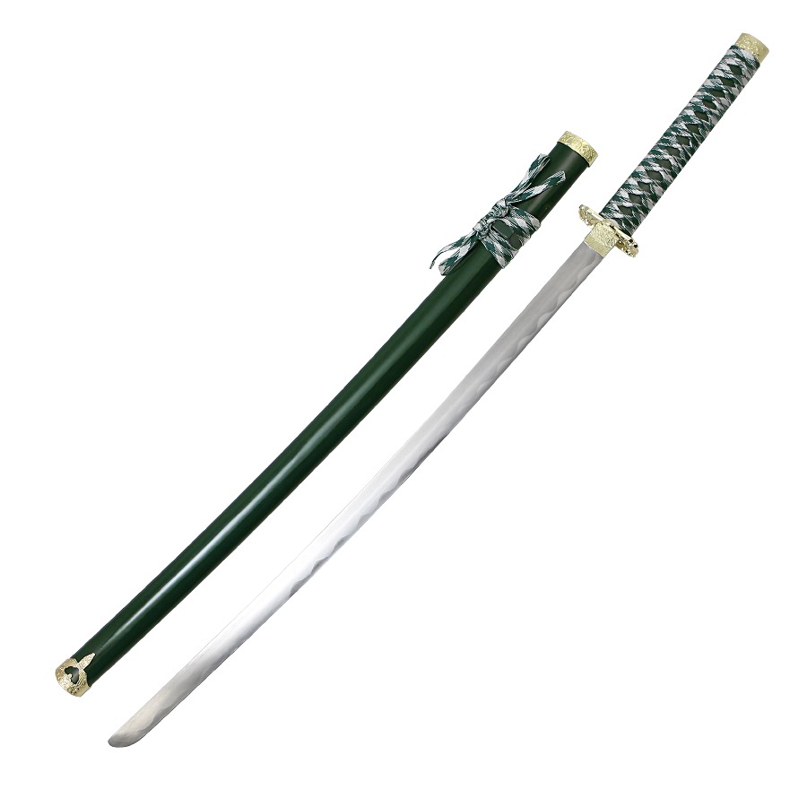 Меч самурайский. ножны зеленые, золотой декор. Производство:Китай Состав:металл, дерево, текстиль Размер:L=102 см