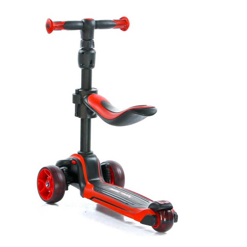 Самокат-беговел 3 в 1 Scooter Micar Moby с сиденьем чёрно-красный