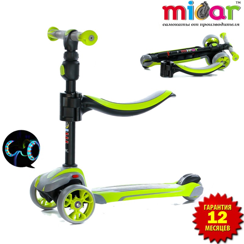 Самокат-беговел 3 в 1 Scooter Micar Moby с сиденьем серо-зелёный