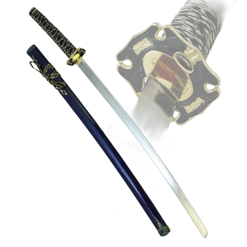Меч самурайский. темно-синие ножны. Производство: Состав:ТОВАР С ВИТРИНЫ!!! Незначительные повреждения ЛКП на ножнах. Нет фабричной упаковки. ВОЗВРАТУ НЕ ПОДЛЕЖИТ!!! Размер:L=102 см  развернуть описание ▼