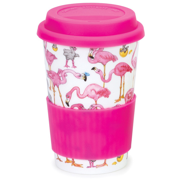 Кружка с силиконовой крышкой Dunoon яркие фламинго 440мл