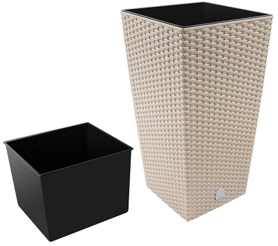 Кашпо для цветов 49 л rato square- мокко. Кашпо для цветов RATO SQUARE 7529U является замечательным украшением вашего садового интерьера, дома, зоны отдыха. Кашпо выполнено с имитацией под натуральный ротанг, что делает его стильным элементом декора. Благодаря прочному пластику изделие устойчиво к ультрафиолетовым лучам. Кашпо для цветов Кашпо для цветов RATO SQUARE 7529U состоит из двух предметов: внутренней емкости, куда сажают растение, и декоративной емкости. • Комплектация: 2 предмета (внутренняя емкость + декоративная емкость) • Размер (ДхШхВ): 325х325х610 мм • Объемы: 21 л / 49 л • Цвет: мокко • Материал: пластик + имитация ротанга • Вес брутто: 2,71 кг (1,95 кг + 0,76 кг) • Транспортная упаковка: 3 штуки • Производство: Prosperplast • Страна: Польша