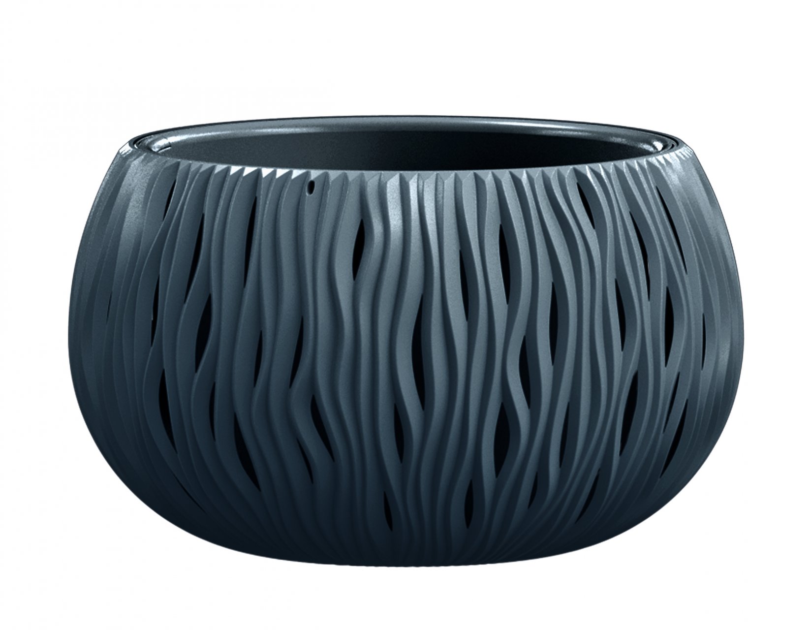 Кашпо для цветов prosperplast sandy bowl 3,9л, антрацит. Кашпо для цветов Sandy Bowl является замечательным украшением садового интерьера, дома, зоны отдыха. Кашпо обладает повышенной стойкостью к высоким и низким температурам, а также к различным механическим повреждениям. Кашпо для цветов Sandy Bowl состоит из двух предметов: внутренней емкости, куда сажают растение, и декоративной емкости. • Комплектация: 2 предмета #40;внутренняя емкость #43; декоративная емкость #41; • Размер #40;ДМхВ #41;: 290х190 мм • Объемы: 3,9 л • Цвет: антрацит • Материал: пластик • Вес брутто: 0,58кг • Количество в упаковке: 4 штуки • Производитель: Prosperplast • Страна: Польша