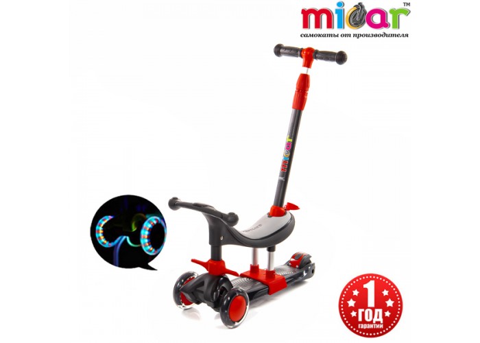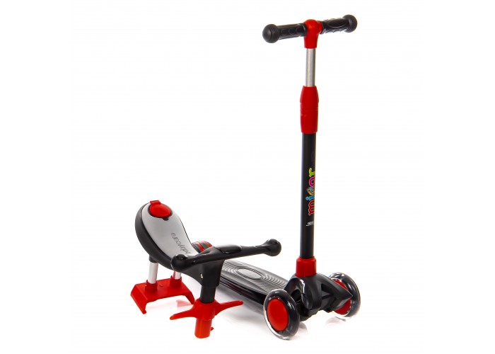 Детский трёхколёсный самокат беговел 3 в 1 с сиденьем и родительской ручко