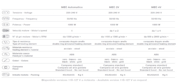 Сушуар mec. Сушуар односкоростной, двухскоростной или четырехскоростной, предназначен для сушки волос потоком нагретого до необходимой температуры воздуха. Сушуар комплектуется таймером, терморегулятором и переключателем скорости. При заказе изделия на кронштейне: рекомендованная высота крепления - 210 см (от пола). Технические характеристики: Мощность: 1000 Вт; Напряжение: 220-240 В; Частота: 50/60 Гц; Вес: 6 кг. Возможные комплектации: - на стойке P01 с пятилучьем; - на стойке P04 с пятилучьем; - на кронштейне. Цвет: белый, черный, золото. Размер (ДхШхВ): 40х42х55 см Цена на сайте указана за комплектацию: E13602 B - MEC AUTOMATIC: 1 скорость, цвет сушуара: белый; Стойка P01 Стоимость модели, представленной на фото, может отличаться от цены, указанной на сайте. Артикул: E13602 B Бренд: Ceriotti