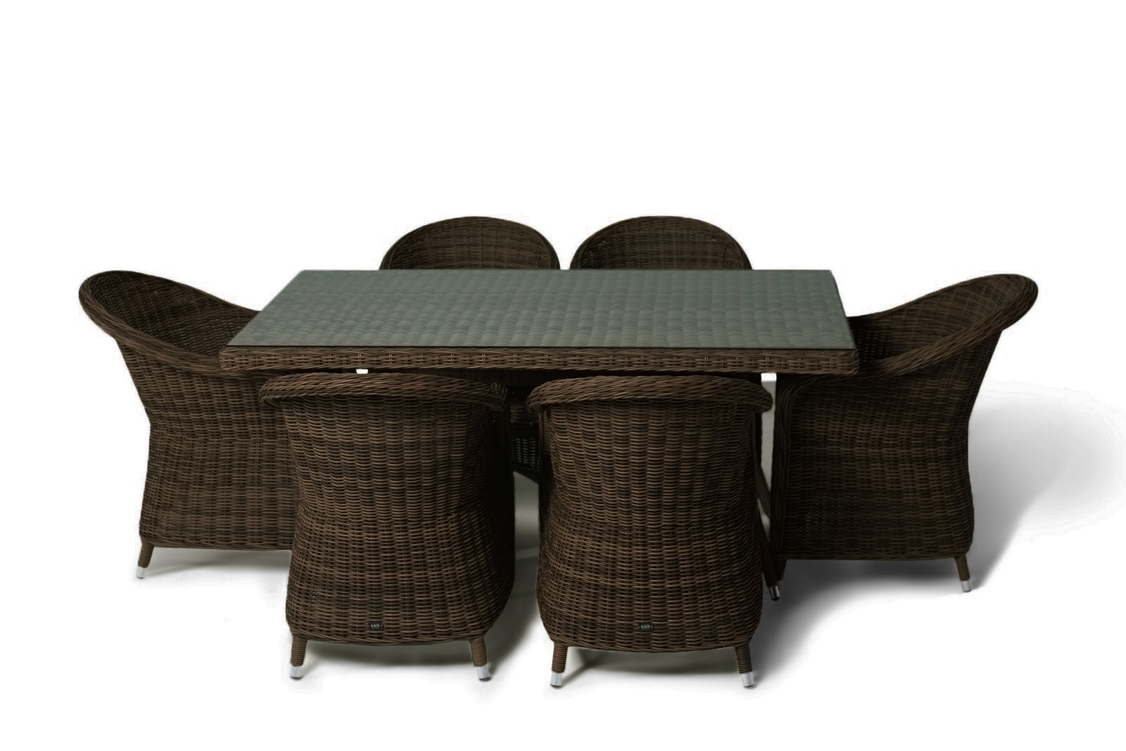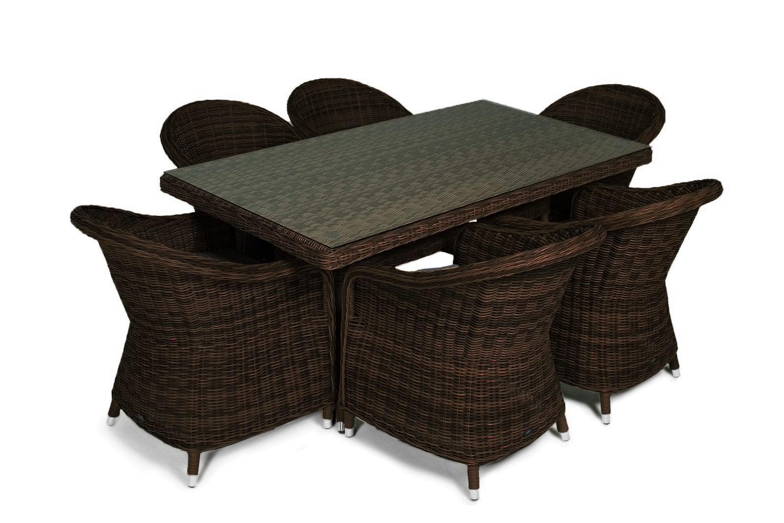 Эспрессо обеденная группа плетеная из искусственного ротанга, цвет коричне. Премиальная обеденная группа для сада, веранды ресторана «Эспрессо» для большой компании. В набор входит большой прямоугольный стол «Латте», размером - 1600х900х750 мм и 6 кресел «Равенна», размер - 680x570x810 мм, в насыщенном коричневом оттенке. Каркас всех предметов мебели изготовлен из легкого и прочного алюминия, оплетенного вручную долговечным искусственным ротангом. Стол для удобства использования накрыт прочным стеклом, кресла укомплектованы подушками со съемными чехлами темно-серого цвета. Вы можете заказать любое количество элементов из данного набора. Свяжитесь с нами для подбора индивидуальной комплектации. Габариты 1000x1000x1000мм Цвет плетения коричневый Цвет подушки темно-серый Материал каркаса алюминий Материал плетения искусственный ротанг Материал подушки полиэстер 100% плотностью 230гр/м2 с влагоотталкивающей пропиткой Вес 82кг