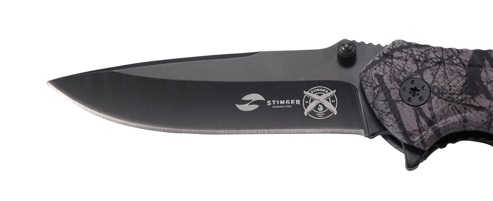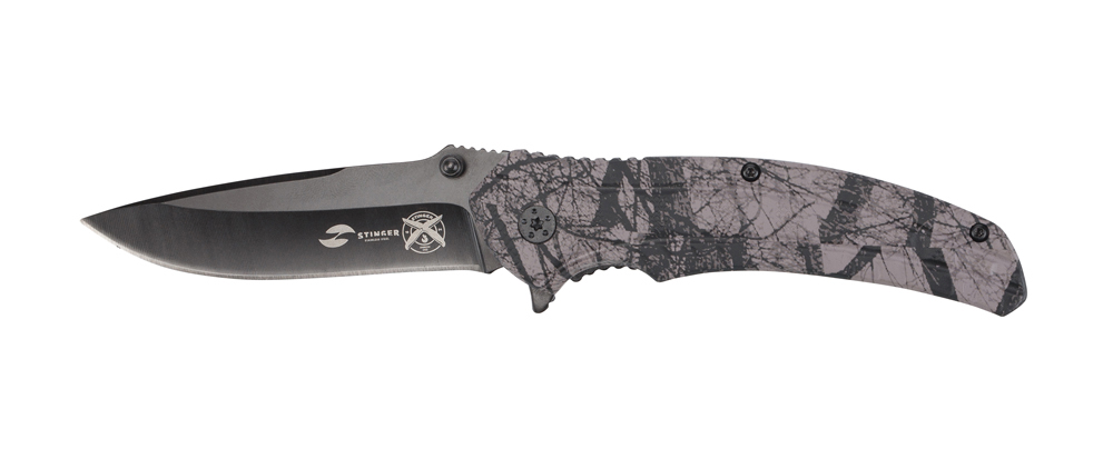 Нож складной Stinger, 84 мм (черный), рукоять: алюминий (черн. камуфляж),