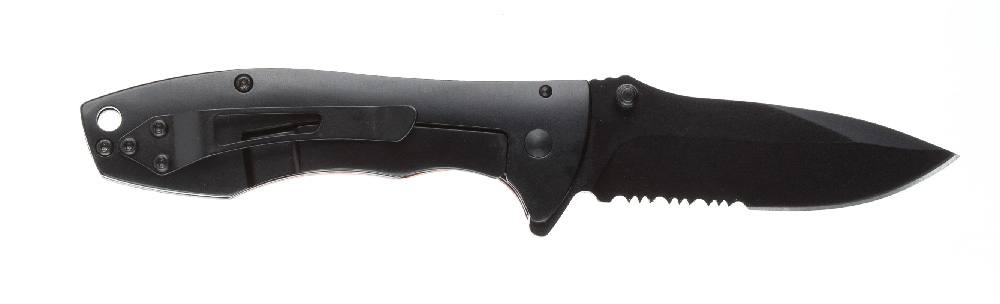 Нож складной Stinger, 80 мм (черный), рукоять: сталь/сандаловое дерево, ка