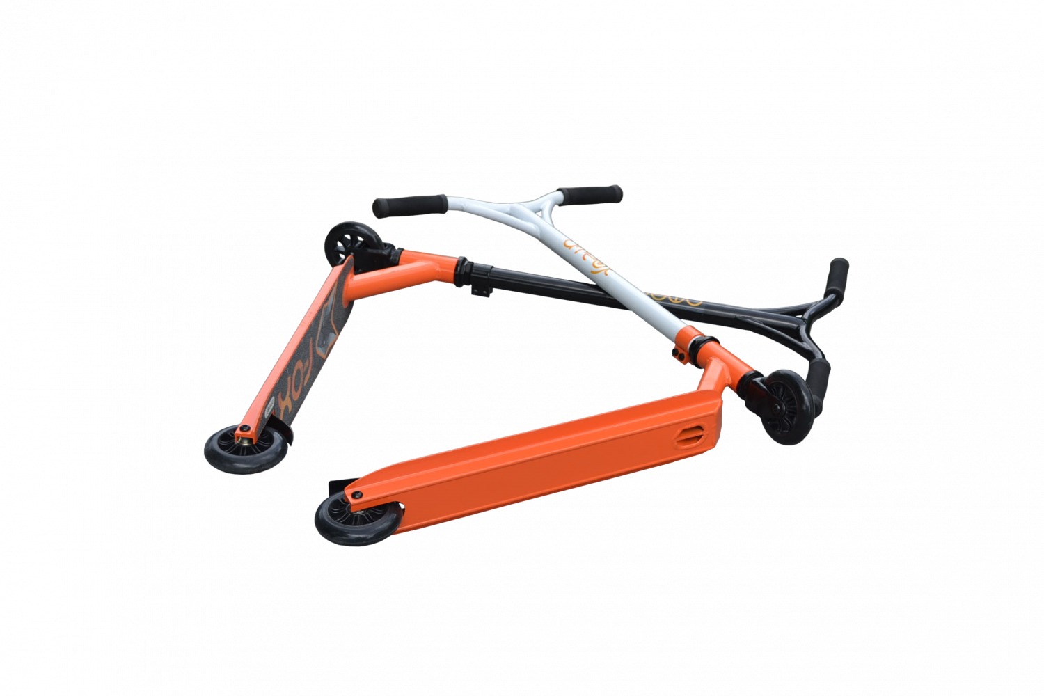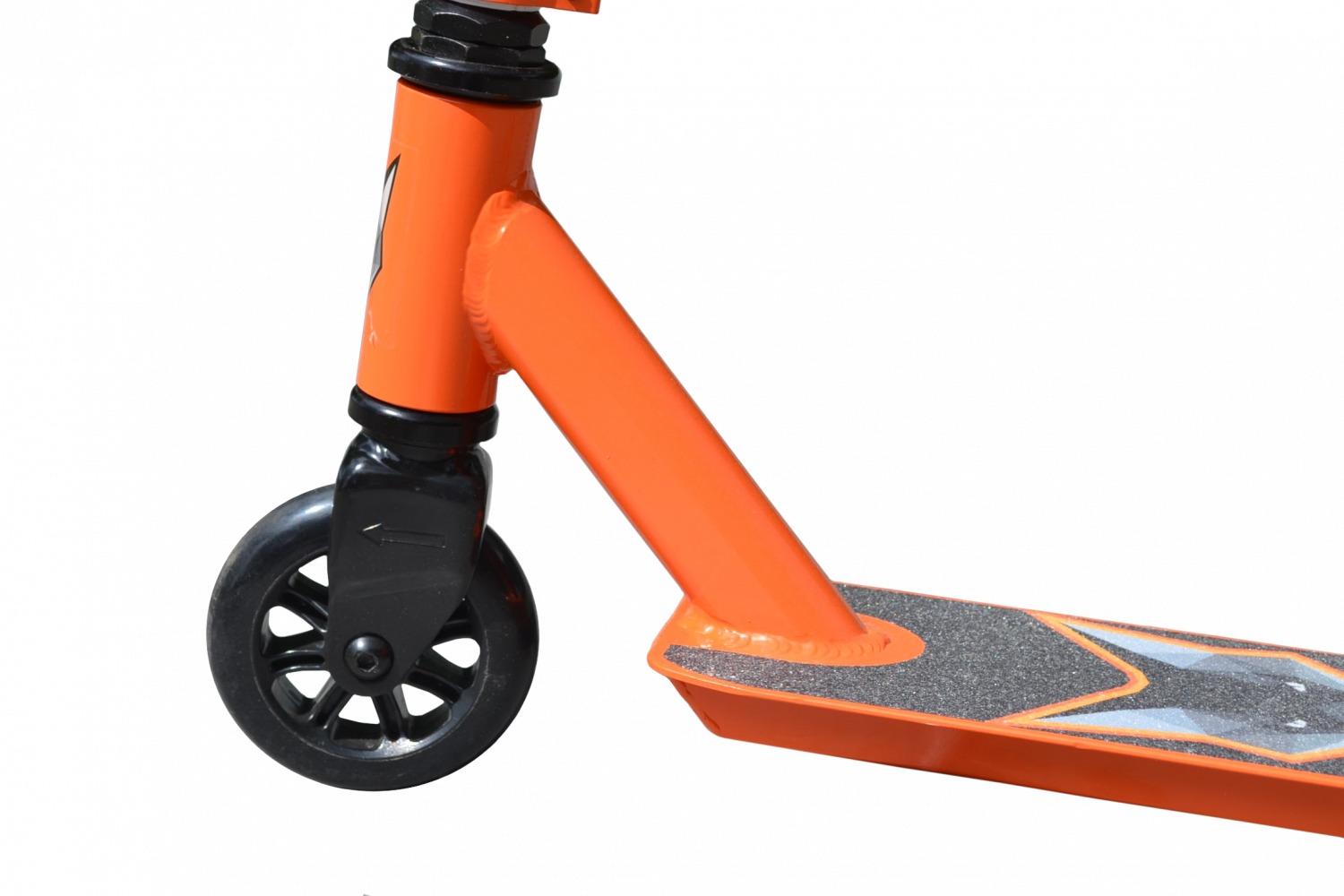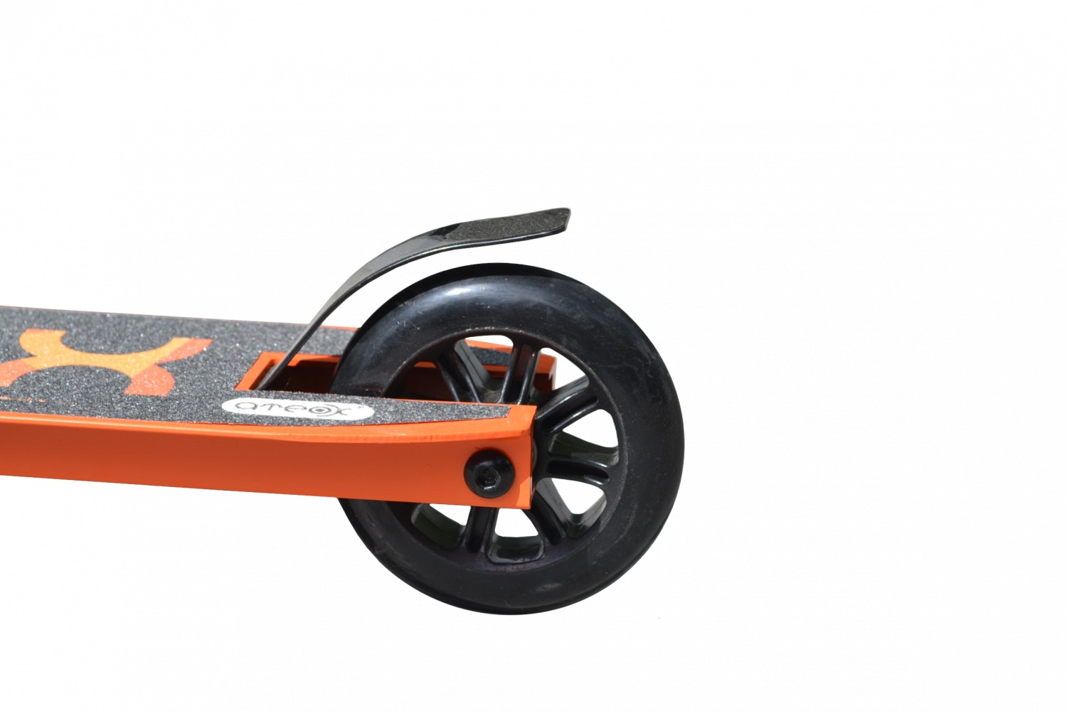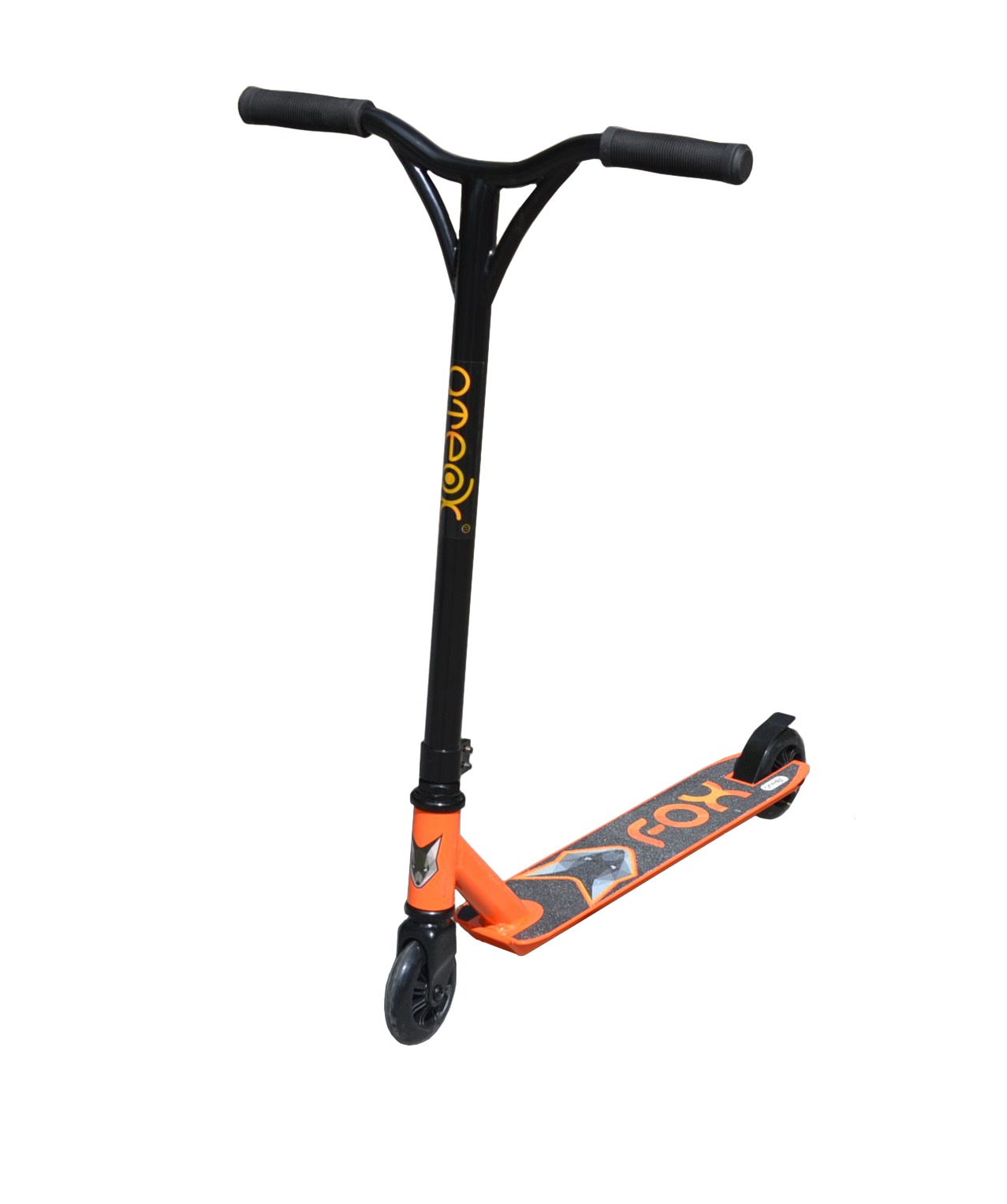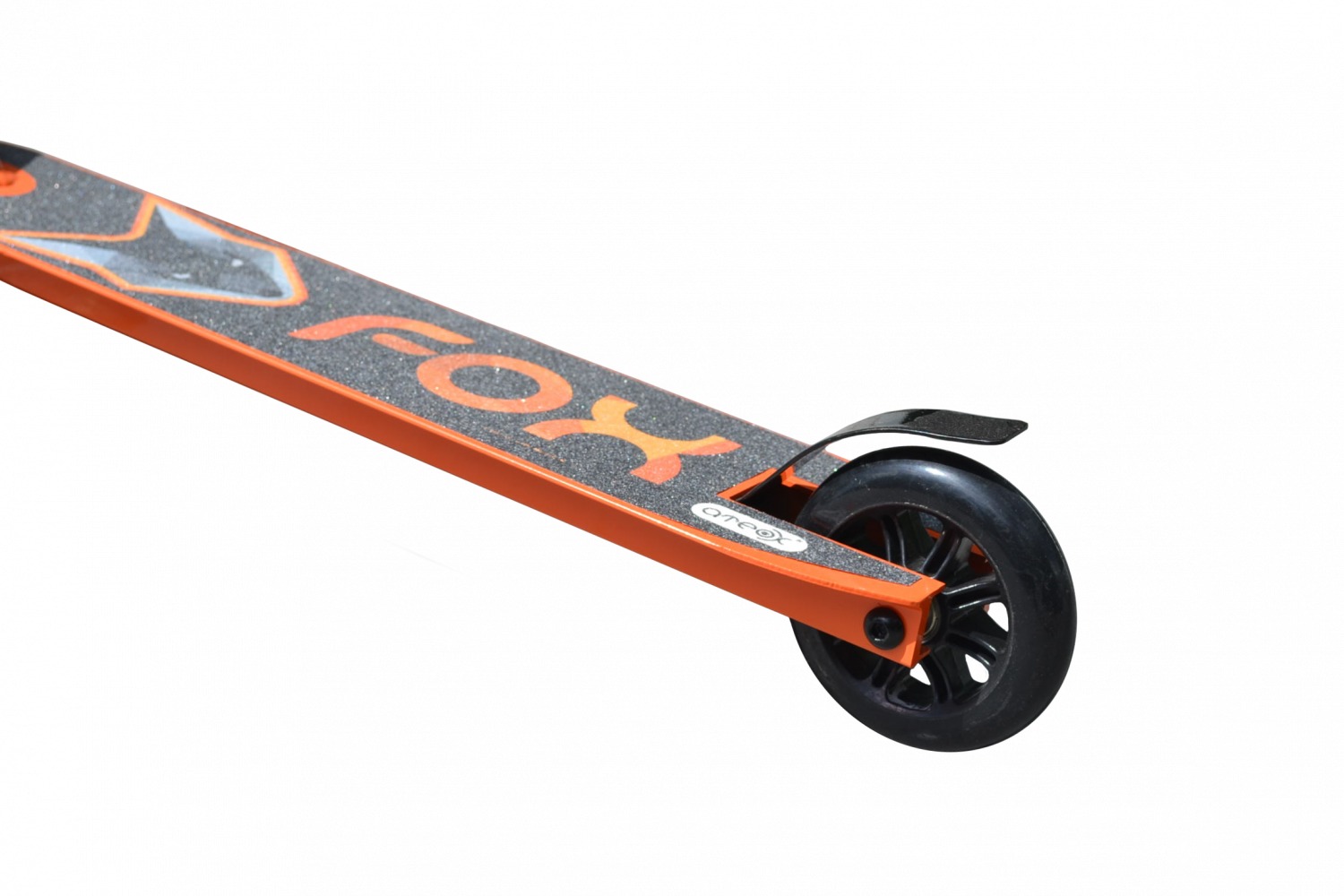 Самокат трюковый ateox fox (черный). Обновленная модель трюкового самоката Ateox Fox 2020 года! Модель для новичков, которые ждут от самоката чуть больше, чем катание по прямой. Самокат позволит отработать начальные элементы активного катания. nbsp Габариты модели небольшие, поэтому самокат подойдет невысоким ребятам и детям младшего возраста. Руль прочный, стальной с удобными грипсами. nbsp Стальная вилка. Соединяется с рулем компрессией на 3-х болтах. Колеса диаметром 100 мм с нейлоновым кордом: маневренные и отзывчивые, в общем то, то что нужно для начинающего райдера. Подходит для детей от 5 лет. Самокат поставляется в двух расцветках: Оранжевый с белым и Оранжевый с черным. Проверено и протестировано райдерами из команды WheelEXPERT.ru! Вес самоката 3,2 кг Возраст от 5 лет Компрессия резьба Клиренс 5 см Высота самоката 81 см Расстояние от земли до поверхности деки 7 см Высота руля 57 см Макс. нагрузка до 70 кг Ширина руля 47,5 см Материал рукояток резина Хомут двухболтовый Дека Д * Ш (10 х 50 см) Жесткость колес 85А Размер колес 100 мм, полиуретан Тормоз задний наступающий (step-on brake) Подшипник ABEC 9 Chrome Противоскользящее покрытие да Вес самоката в коробке 3,8 кг Габариты коробки (ДхВхШ) 65 см х 46 см х 11 см Гарантийный срок 12 месяцев Бренд Россия