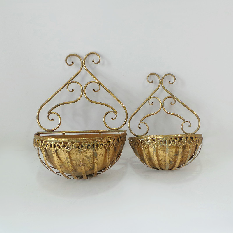 Кашпо подвесное, пара, для цветов уличное, золотая патина