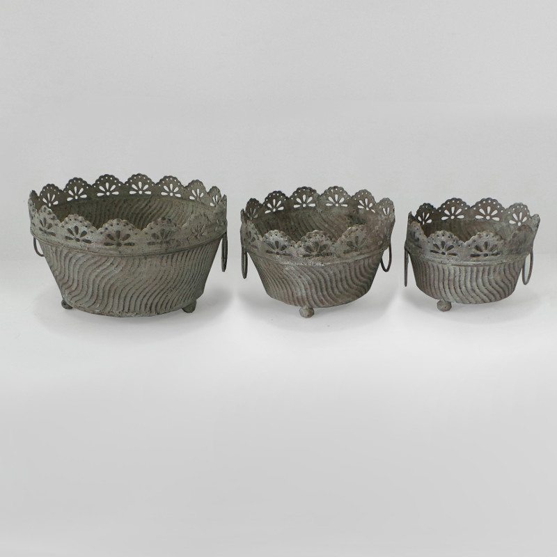 Кашпо напольное, набор из 3-х, для цветов декоративное, белая патина