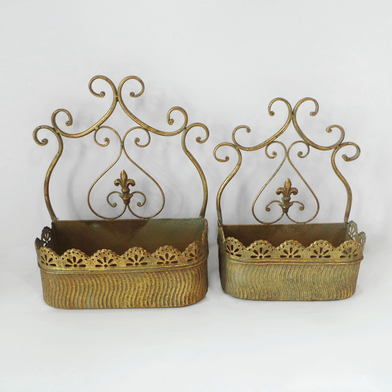 Кашпо настенное, пара, для цветов декоративное, золотая патина