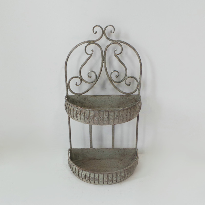 Кашпо настенное 2-х ярусное для цветов декоративное, белая патина