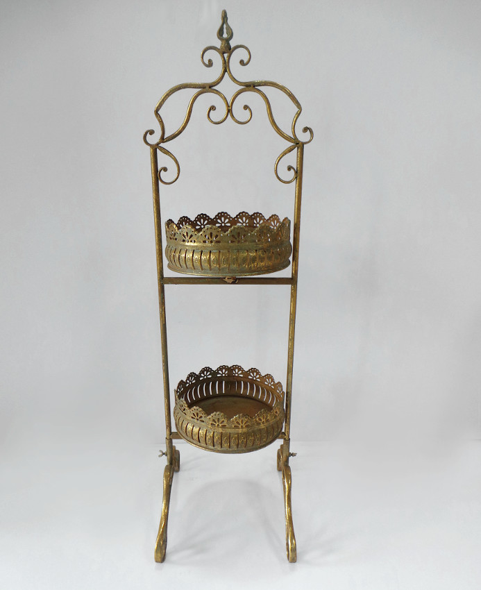 Этажерка 2-х ярусная для цветов декоративная, золотая патина