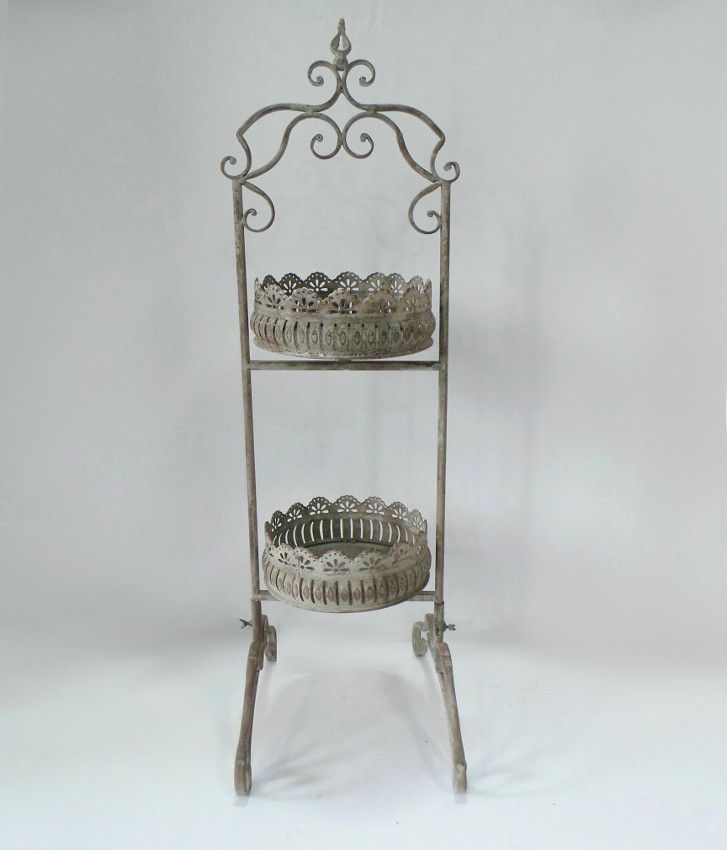 Этажерка металлическая 2-х ярусная для цветов декоративная, белая патина