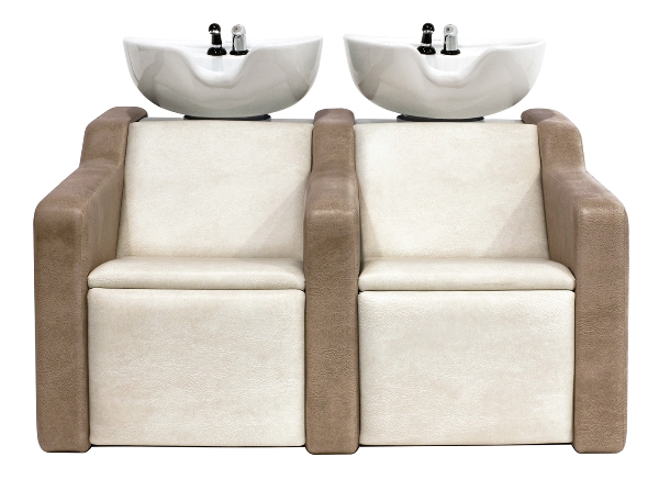 Мойка парикмахерская двойная. Каркас, сиденье и спинка выполнены из высококачественного вспененного полиуретана с вставками из дерева и металла. Кресло оснащены мягкими и комфортными подлокотниками. Мойка оснащена металлическими столешницами и полками для хранения инструментов. Мойка комплектуется глубокими керамическими раковинами с регулировкой угла наклона и комплектами смесителей. Обивка - искусственная кожа высшего качества.