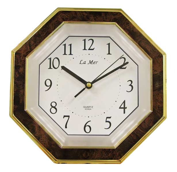 Настенные часы la mer gd 021007. Размеры, мм 284x284x49 мм. Материал Пластик Форма Восьмигранные Механизм Плавного хода Циферблат Арабский Цвет корпуса Коричневый Особенности Настенные