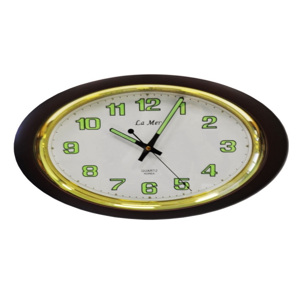 Настенные часы la mer gd121-1 c. Настенные часы La Mer GD121-1 C Корейские Настенные часы La Mer GD121-1 C имеют надежный кварцевый механизм. Плавный (без рывков), бесшумный ход секундной стрелки Корпус выполнен из высококачественного пластика Циферблат овальной формы, белого цвета. Часовая, минутная и секундная стрелки. Временные рамки обозначены большими арабскими цифрами c фосфорным напылением (светятся ночью) Характеристики Настенные часы La Mer GD121-1 C Механизм:кварцевый Размер:26х40х4 см Корпус:пластик Производитель : Ю.Корея Гарантия:1 год Размер, см : 26х40х4 Цвет : Коричневый Материал : Пластик Механизм : Кварцевый Функции : Светонакопительный циферблат