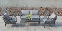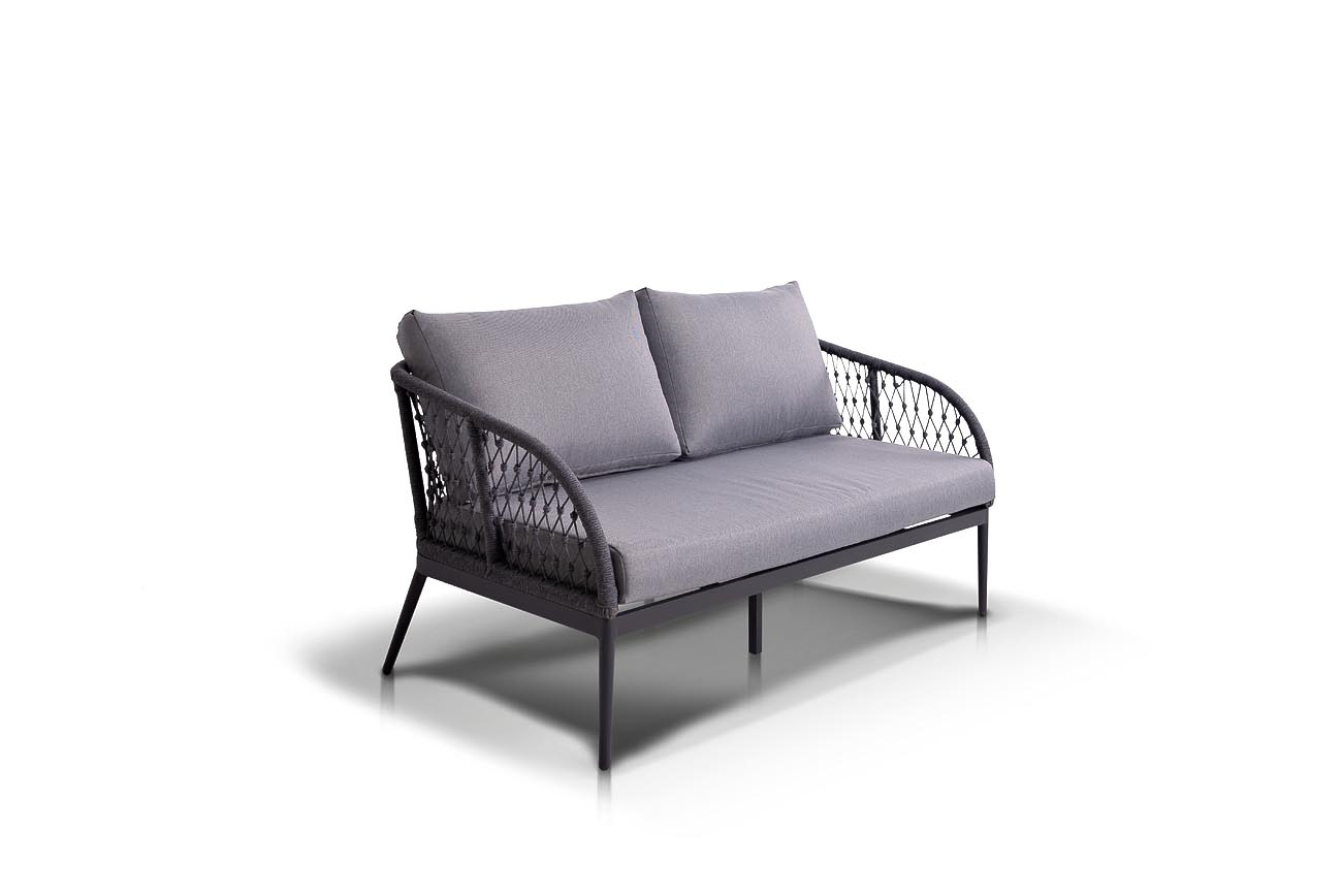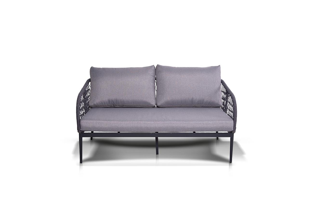 Канны диван двухместный, алюминиевый каркас, оплетен вручную эластичными синтетическими лентами из высокопрочных полиэфирных волокон, кресла оснащены подушками со съемными чехлами, размер 1470х780х710, цвет темно-серый Габариты 1470x780x710мм Материал подушки полиэстер 100% плотностью 230гр/м2 с влагоотталкивающей пропиткой Вес 16.5кг