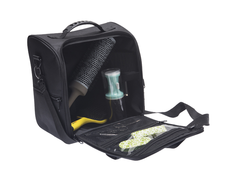 Сумка для парикмахерских инструментов dewal gs-150. Сумка для парикмахерских инструментов DEWAL это незаменимая вещь и отличный подарок для мастера. В такой сумке вы сможете в полном порядке хранить и перевозить все необходимые парикмахерские инструменты для работы. Изготовлена из полимерного материала. Закрывается на молнию. Имеет один большой отдел, и три внутренних кармана, в которые помещаются парикмахерские инструменты и аксессуары. В одном из отделов есть специальная кобура для хранения ножниц. По бокам сумки два отделения на молнии. На задней стороне сумки имеется рукав для продевания в телескопическую ручку чемодана для удобной перевозки. Наплечный ремень оснащен специальной мягкой вставкой. Такая же вставка есть на ручке для переноски. Размеры 29 х 29 х 18см Материал Полимерный материал Назначение Для парикмахерских инструментов Цвет Черный
