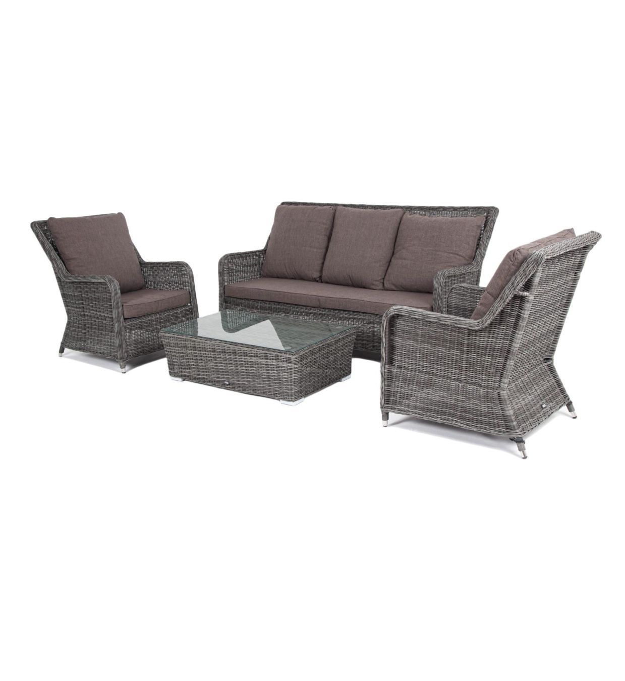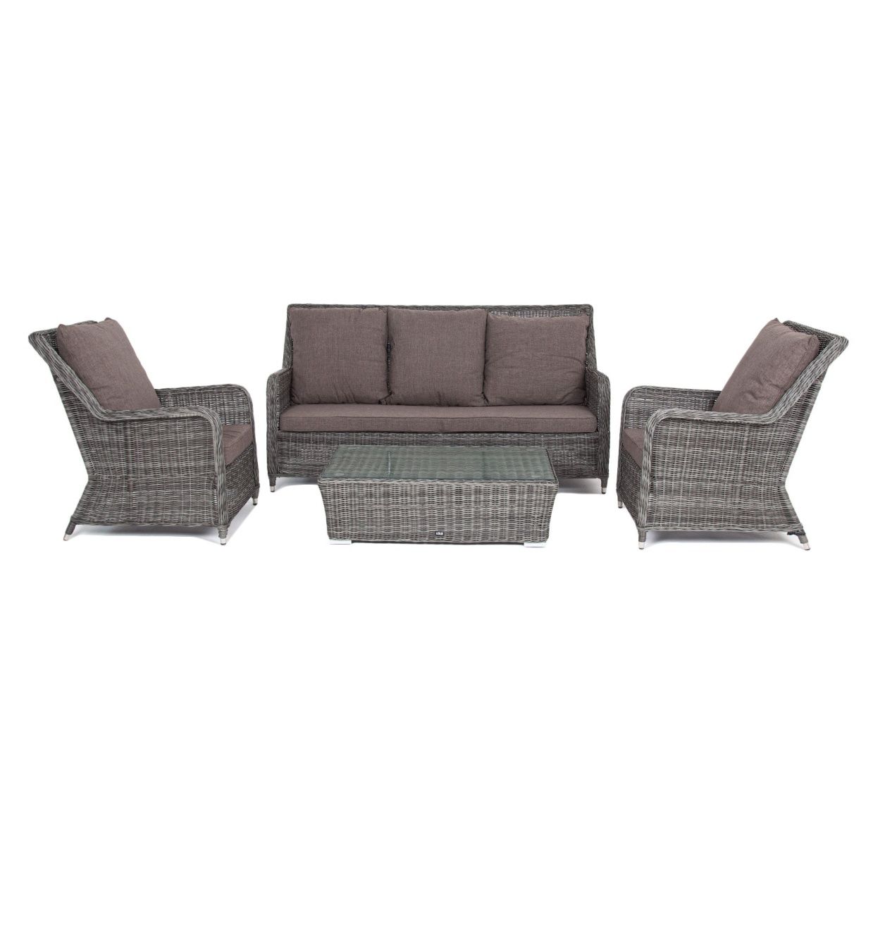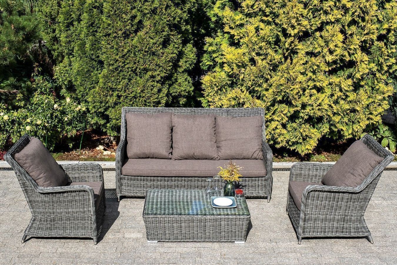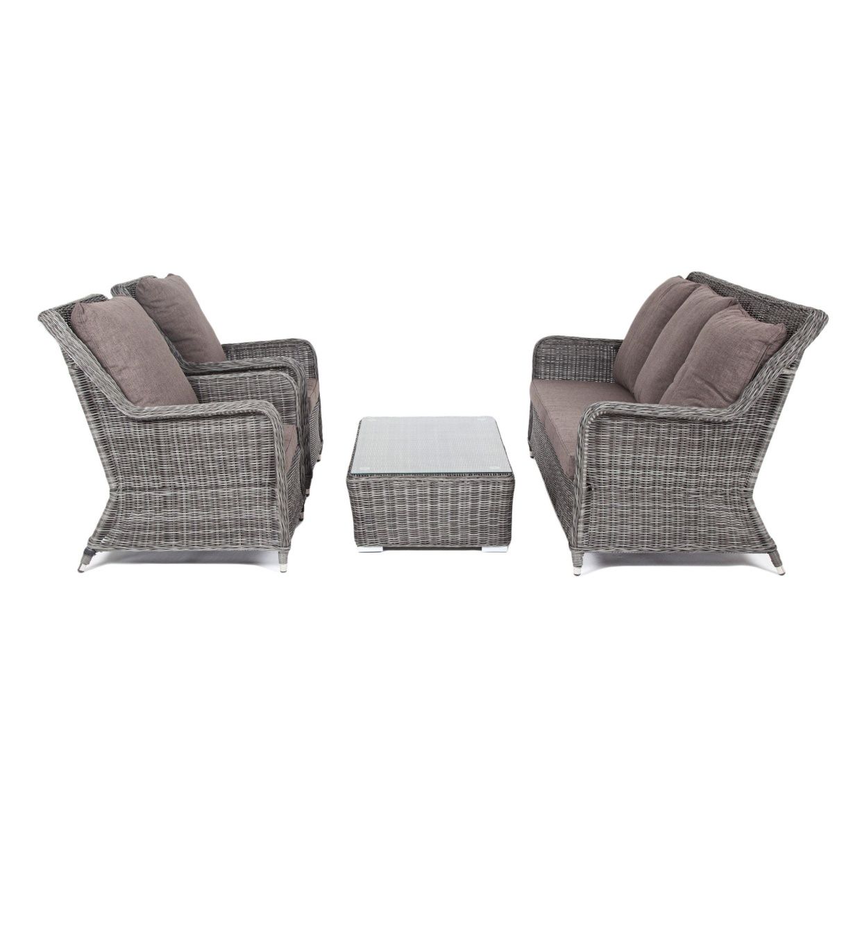 Гляссе лаунж-зона из искусственного ротанга, цвет графит. Вместительная лаунж-зона «Гляссе» состоит из: - трехместного дивана – 1900x900x980 мм - двух кресел – 900x730x980 мм - журнального столика – 1100x660x300 мм. Модели имеют алюминиевый каркас, который оплетен вручную искусственным ротангом. Плетеная мебель дополнена удобными подушками в серых чехлах. При их изготовлении используют полиэстер, плотность – 230гр/м2. Он обрабатывается влагоотталкивающей пропиткой для повышения защитных свойств материала. Журнальный столик оснащен пластиковыми ножками и столешницей из закаленного стекла толщиной 5 мм. Вид ротанга круглый Цвет плетения графит Цвет подушки серый Материал каркаса (стул/кресло/диван) алюминий Материал плетения искусственный ротанг Материал подушки полиэстер 100% плотностью 230гр/м2 с влагоотталкивающей пропиткой Габариты упаковки (ДШВ) 190/99/145 Вес (Брутто) 76 Вес (Нетто) 77кг