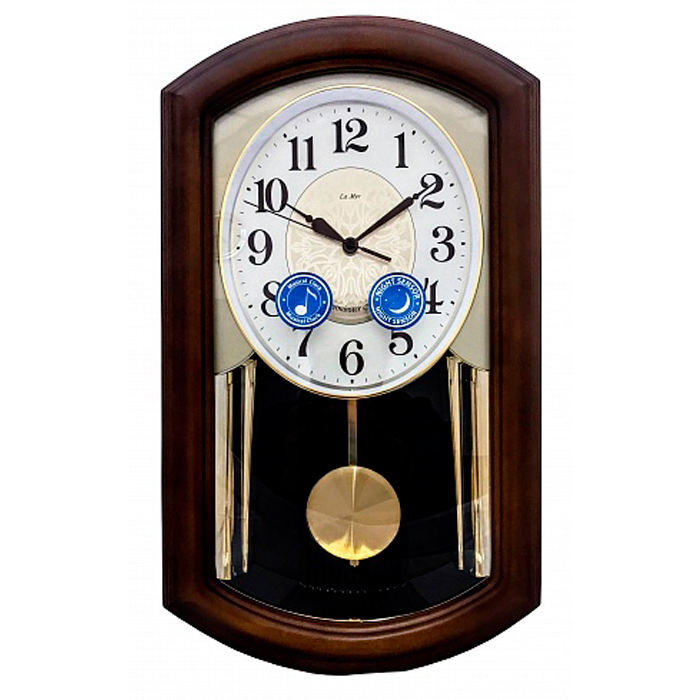 Настенные часы с мелодиями и маятником la mer gt-9515-1. Настенные часы с мелодиями и маятником La Mer GT-9515-1 Настенные часы с мелодиями и маятником La Mer GT-9515-1 имеют надежный кварцевый механизм, бой с мелодией Вестминстер. Материалы: МДФ, стекло. Регулятор громкости. Настенные часы с боем и Вестминстерской мелодией каждый час. Автоматическое ночное отключение звуков с 23.00 ночи до 6.00 утра. Маятник раскачивается бесшумно. Механизм Young Town Батарейки в комплекте Размер: 518*296*79 мм. Вес: 3 кг. Размер, см : 52*30*8 Цвет : Коричневый Материал : МДФ, стекло Механизм : Кварцевый Функции : Мелодия, Бой, Ночной режим