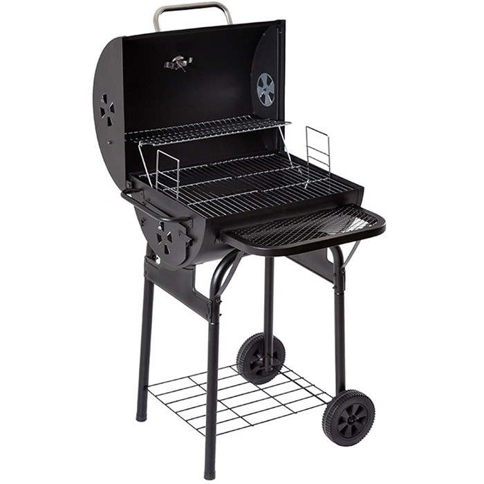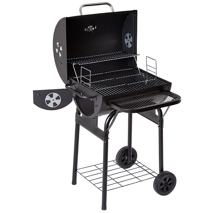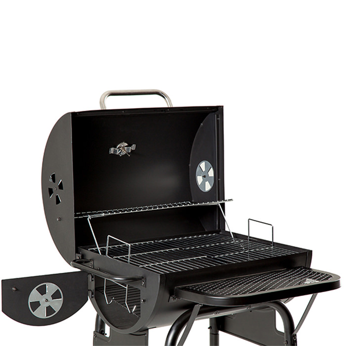Стационарный угольный гриль-бочка grill-master 53. Стационарный угольный гриль-бочка оснащен круговой запирающейся вентиляцией и множеством настроек. Заметное преимущество этой модели - запирающийся боковой колосник, который обеспечивает быстрый и удобный доступ к углю внутрь жаровни в процессе гриллинга. Этот гриль максимально удобен в эксплуатации и прослужит вам долгие годы. Характеристики Размеры Размер жаровни 50x41 см Размер грилевой решетки 48x40 см Высота грилевой решетки 79 см Размер гриля (В x Ш x Г) 66х69х98 см Вес 14 кг Материал Жаровня Сталь/жаропрочная эмаль Грилевая решетка Сталь хромированная Угольная решетка Сталь хромированная Страна производства Китай