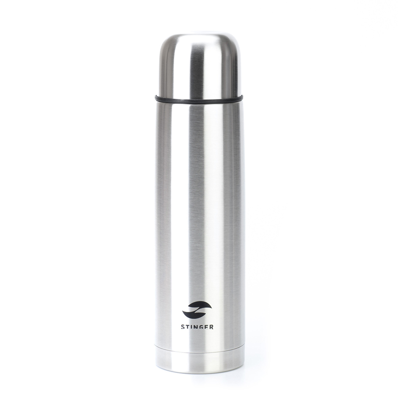 Термос Stinger с чехлом, 1 л, узкий, сталь, искусств. кожа, серебристый, ч