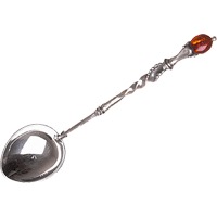 Серебряная ложечка витая из янтаря. Состав: серебро 875 пробы, вставка-янтарь. Длина 11 см. Вес серебра в изделии - 13,5 гр. Поставляется в подарочном футляре. В случае отсутствия товара на складе срок изготовления от трех недель.