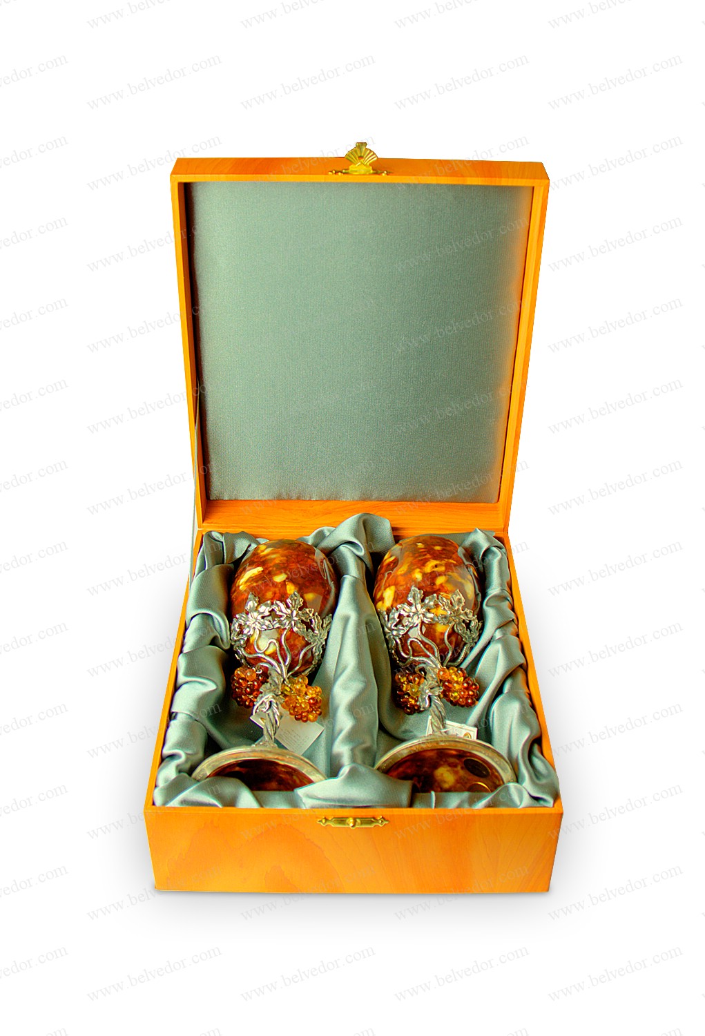 Бокалы из янтаря для вина "виноград" в наборе на 3 персоны (серебро) Бокалы из янтаря для вина "виноград" в наборе на 3 персоны (серебро)